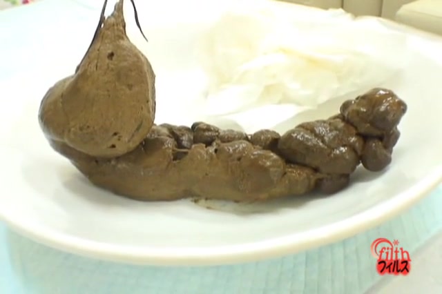 Sexy Asian girl is pooping hard on a white plate. She wipes her asshole with some white toilet paper…Awesome.