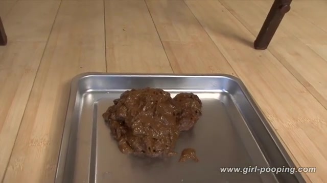 Brown haired girl sits on a homemade toilet as she's trying hard to poop. She's a bit constipated but she managed at the end to poop on the floor.