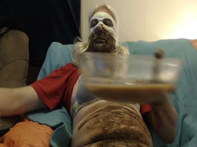 Petra is a mature blonde woman. She smeared fresh shit on her entire face. After that she even ate a piece of it…pretty extreme.