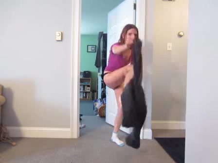 Blonde teen girl is pooping a tiny red shit on the carpet in the living room. She leaves after like nothing happened…haha.