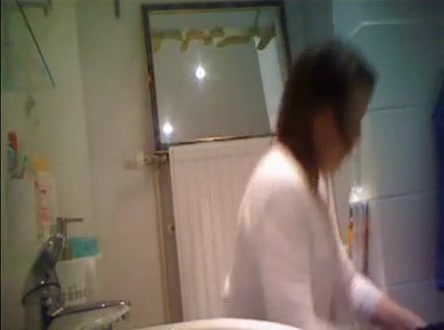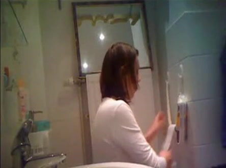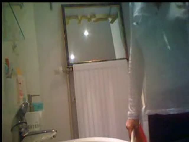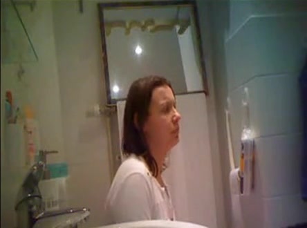 A sick person installed a hidden camera in a public bathroom. Because of that we can see a mature woman pooping in a toilet.