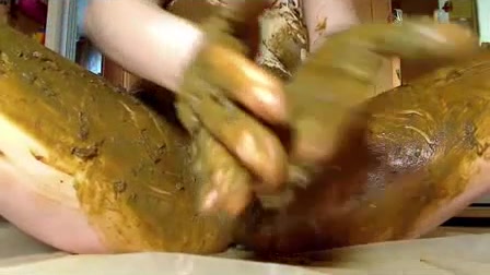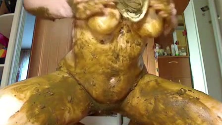 Teen brunette girl decides to make her first scat video. She smeared fresh shit on her entire body. She inserts her entire fist into her tight pussy after that…nice.
