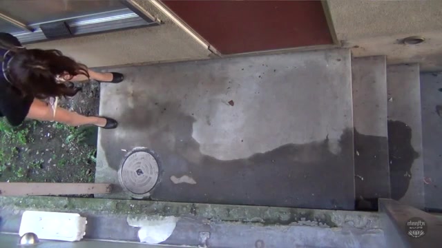 Sexy brown haired Japanese girl is pooping outdoor behind a building. She dropped a big shit on the ground because she couldn't find a public bathroom.