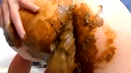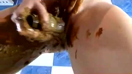 Teen girl sits naked on the floor. She smears fresh brown shit on her pussy. After that she inserts her entire fist deep down into her tight pussy…awesome.