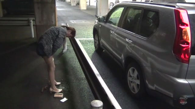 Brown haired Japanese girl pulled over her car so she can poop behind a car, outdoor. She couldn't find a public bathroom…nice.