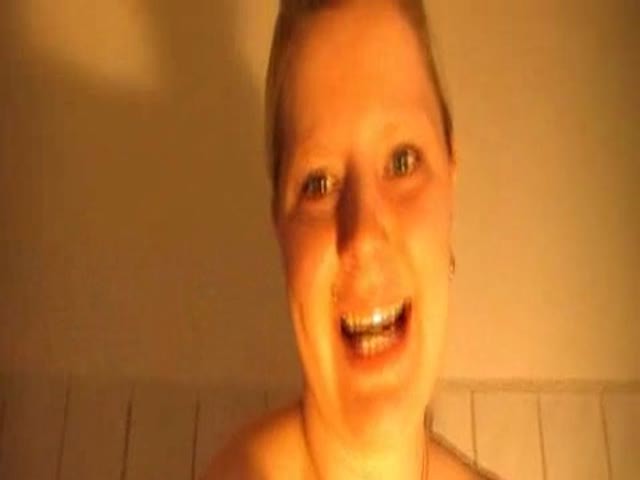 Blonde MILF dropped a big pile of shit on the floor. She peed over it after that so she can eat the pieces of scat easily…fucking awesome.