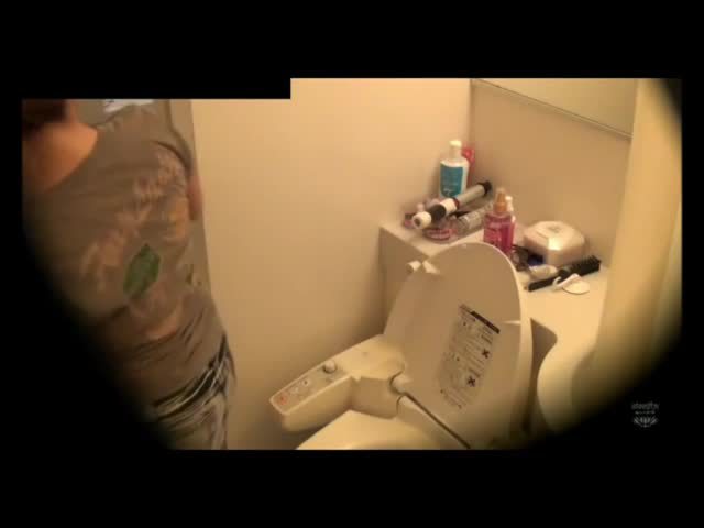 Brunette Japanese girl is trying hard to poop but she's very constipated. She sits on that toilet for five minutes until she managed to poop a tiny piece of shit.