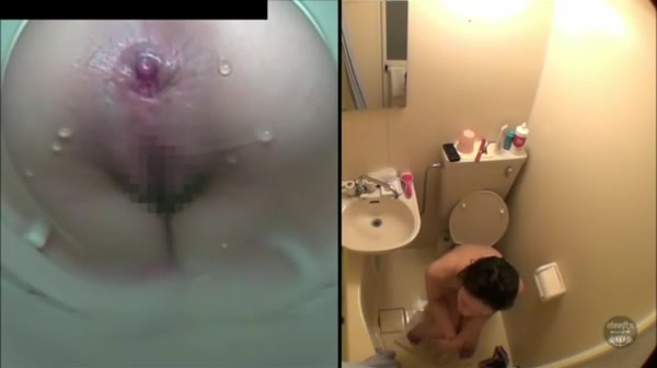 Teen brunette college girl sits naked on the toilet. She's pooping in the toilet…She didn't know that a hidden camera was installed there…haha.