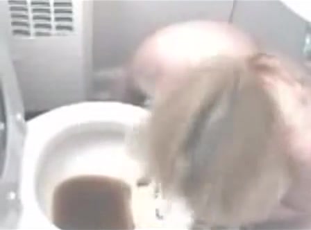 Blonde mature woman just finished pooping in the toilet. She can't flush the fresh shit so she decided to eat it all…what a scat girl.
