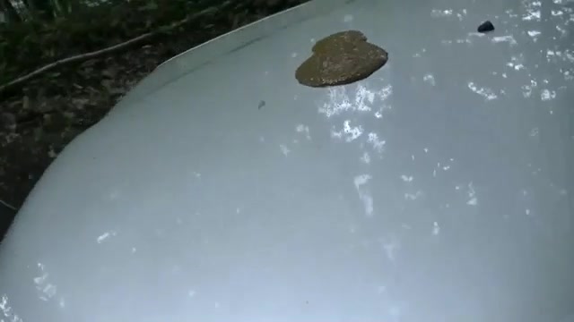 Teen girl pulled over her car in the middle of a forest. She gets on top of the car hood…so she can poop a big pile of diarheea on it.